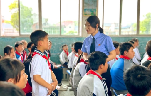 “如果遇到同学被索要财物,我们应该怎么做?”未检干警饶萍萍结合青少年心理特点,选取校园盗窃、网络诈骗、聚众斗殴等典型案例,以动画短片、角色扮演等形式还原事件经过。在“假如你是小小检察官”互动环节,学生们化身“法治小顾问”,围绕《中华人民共和国未成年人保护法》《中华人民共和国预防未成年人犯罪法》提出解决方案,现场笑声与掌声交织,法律知识在思辨中入脑入心。