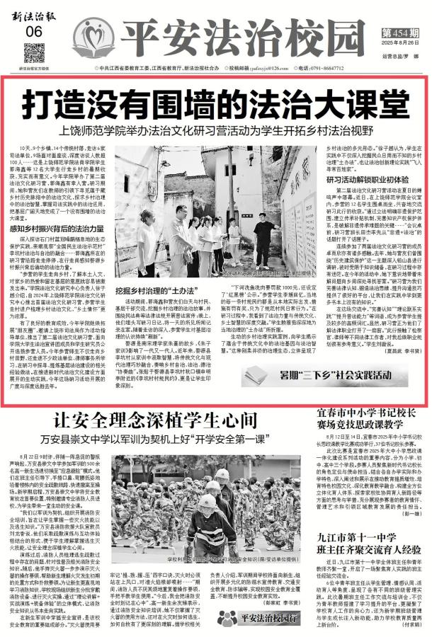 “参营的学生走向乡村,了解本土人文,对家乡的热爱和留在基层的意愿就容易被激发出来。”学院法治文化研究中心负责人徐子越介绍,自2024年上饶师范学院法治文化研究中心推出首届法治文化研习营,参营学生走村进户梳理乡村法治文化,“乡土情怀”更为浓厚。