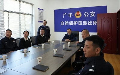 在广丰分局保护区派出所,夏得湧详细了解了基层基础建设、生态警务机制运行、队伍管理等情况。他强调,要坚持靠前一步、主动作为,加快推进生态警务机制建设,推动将警务工作与生态环境保护深度融合,全力守护生态安全;要依托“专业+机制+大数据”新型警务运行模式,深化治安“三张图”应用,强化巡查管控,健全“人防+技防”的立体监控网络,常态化开展联合执法,多措并举抓细抓实爱鸟护鸟等生态保护工作;要加强宣传引导,线上线下广泛开展鸟类等野生动物保护宣传,动员全社会力量参与生态保护,共同守护上饶绿水青山。
